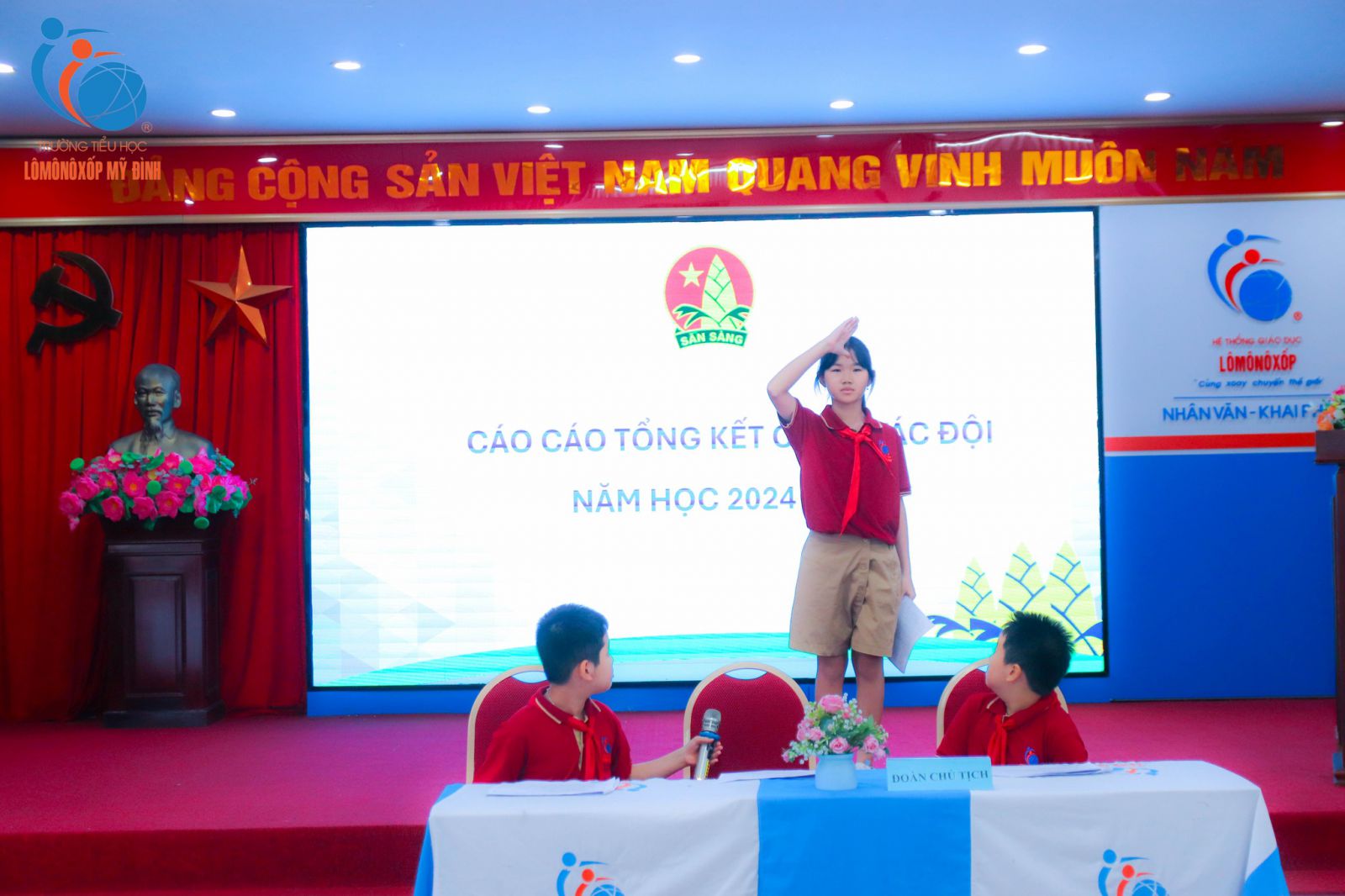 Sáng ngày 27/10/2025, trong không khí trang trọng và tràn đầy sắc màu tuổi thơ, Liên đội Tiểu học Lômônôxốp Mỹ Đình đã long trọng tổ chức Đại hội Liên đội nhiệm kỳ năm học 2025 – 2026. Đây là dịp để toàn Liên đội cùng nhìn lại một năm hoạt động đầy sôi nổi, đồng thời xác định phương hướng và quyết tâm cho chặng đường mới.