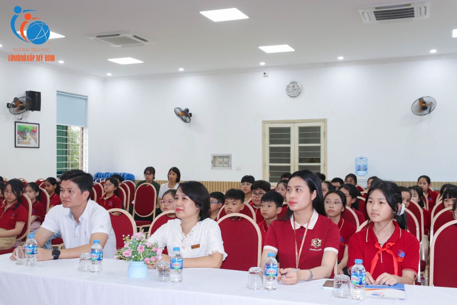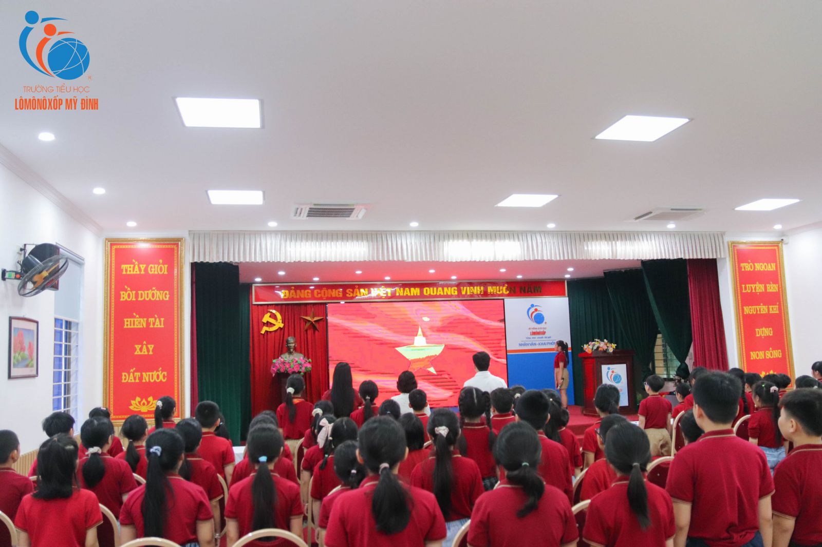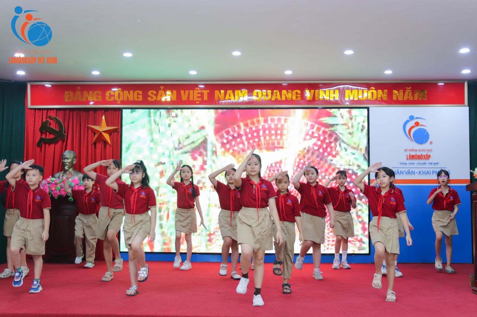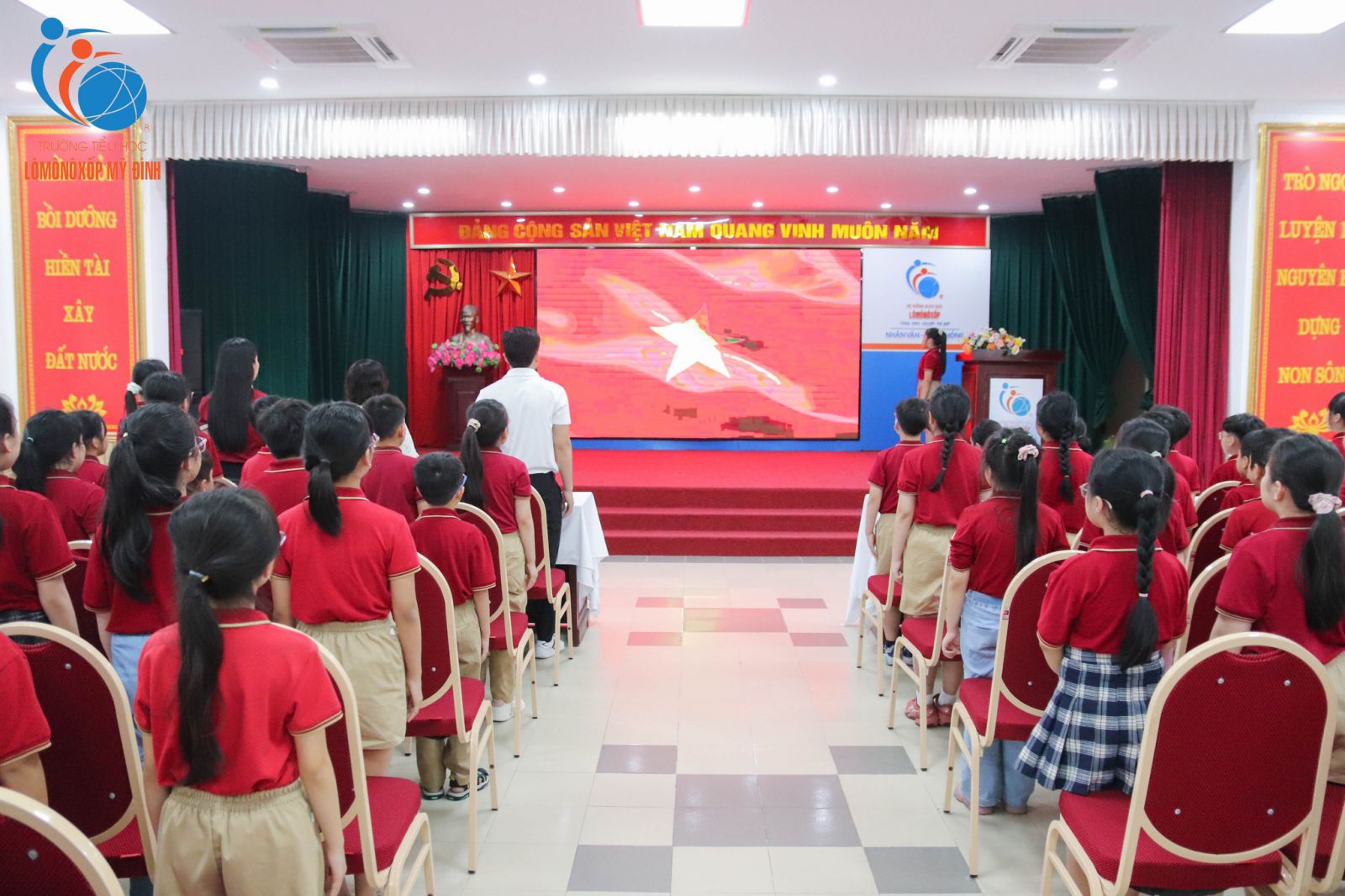 Trong sắc đỏ quen thuộc của lá cờ Tổ quốc và biểu tượng Đội Thiếu niên Tiền phong Hồ Chí Minh, những chiếc khăn quàng đỏ được trân trọng trao lên vai các em học sinh khối 3 và khối 5 trong buổi lễ kết nạp Đội viên diễn ra trang trọng tuần qua. Khoảnh khắc các em nhận chiếc khăn quàng, đứng nghiêm trang đọc lời hứa đội viên đã tạo nên một dấu mốc đáng nhớ, đánh dấu bước trưởng thành đầu tiên trên hành trình học tập và rèn luyện dưới mái trường Tiểu học Lômônôxốp Mỹ Đình thân yêu.