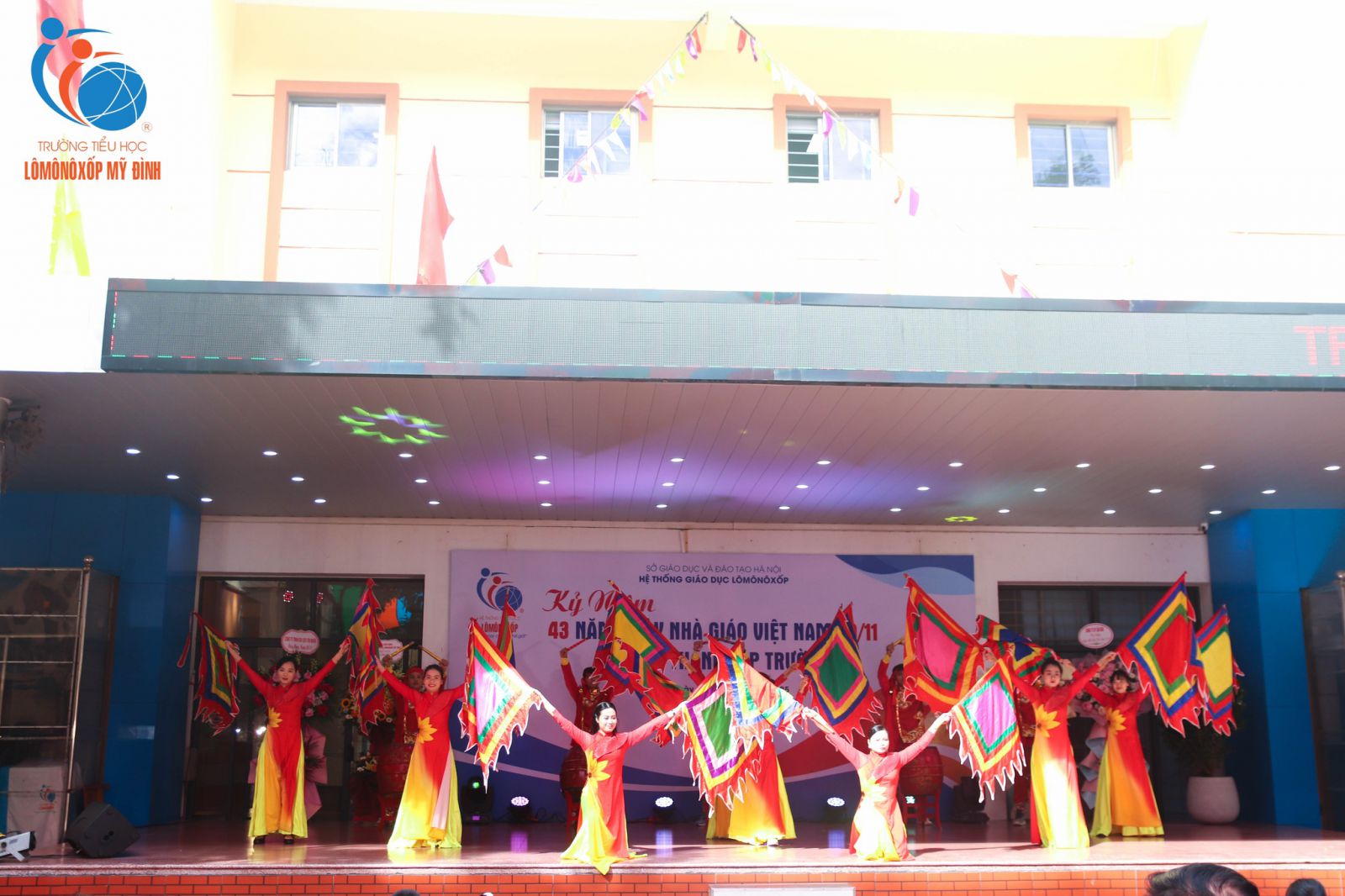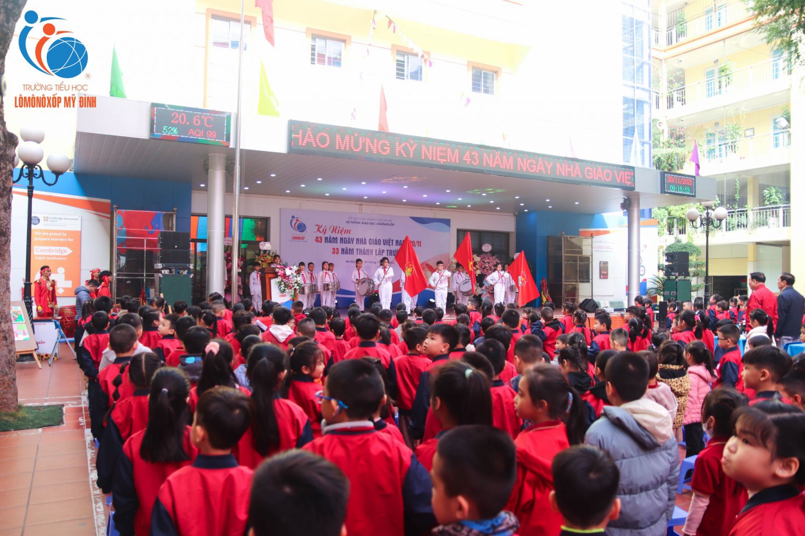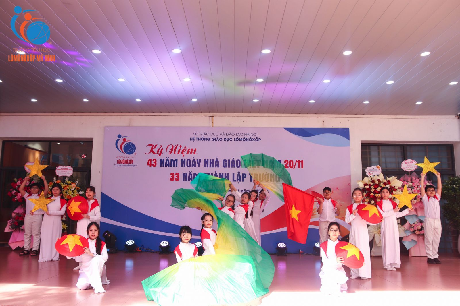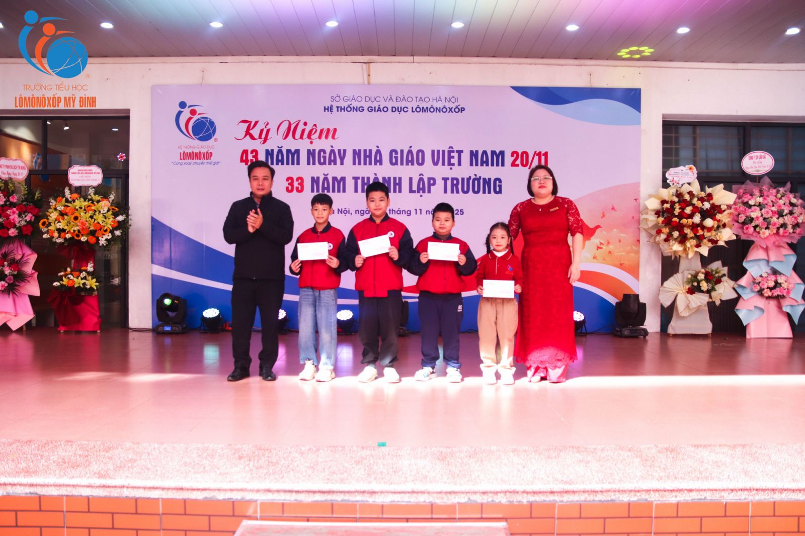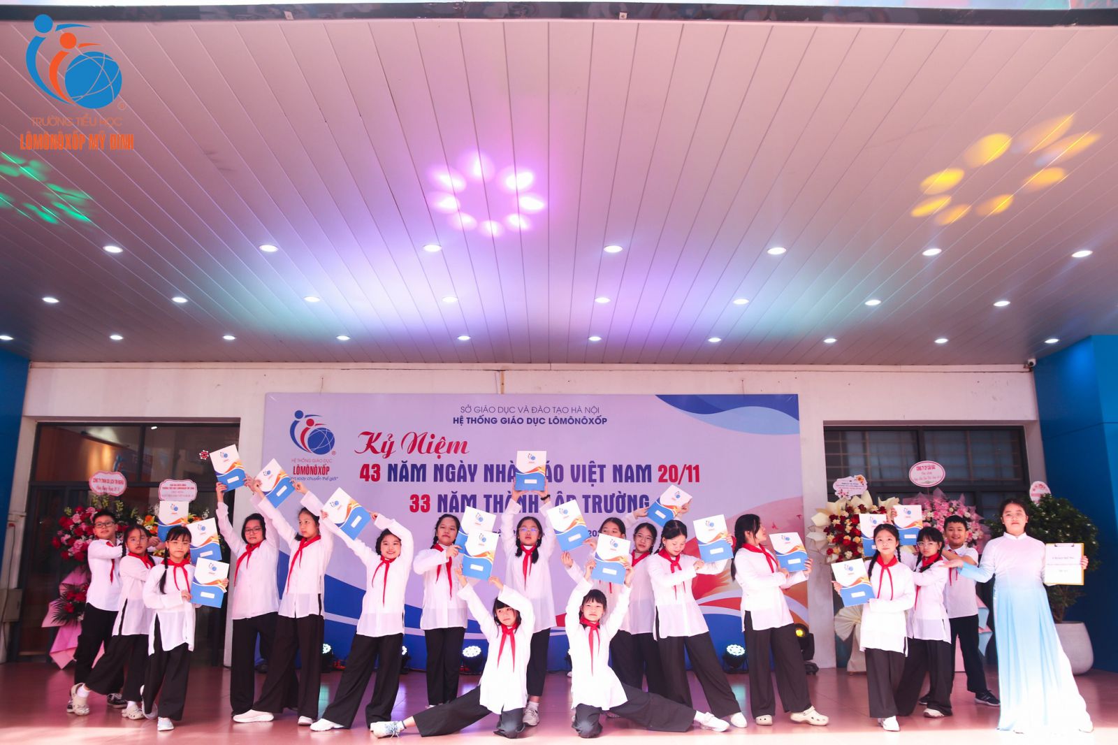 Tháng Mười Một khẽ chạm vào sân trường bằng những cơn gió se lạnh, mang theo dư vị ngọt lành của yêu thương và tri ân. Trong không khí rộn ràng mà trang trọng ấy, sáng ngày 20/11/2025, Trường Tiểu học Lômônôxốp Mỹ Đình long trọng tổ chức lễ kỷ niệm 43 năm ngày Nhà giáo Việt Nam 20/11.