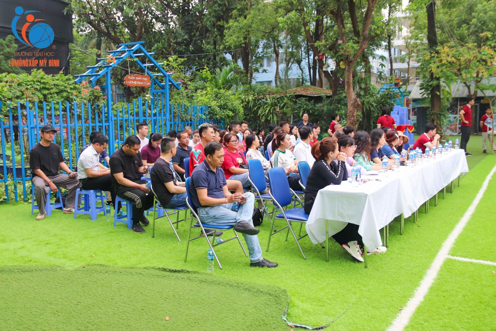 Sức nóng tại sân trường không chỉ đến từ các vận động viên nhí, mà còn từ "hậu phương" vững chắc. Các bậc phụ huynh đã tạm gác lại công việc để đến tiếp sức, những tiếng hô vang "1-2-3 cố lên" của thầy cô giáo đã tạo nên một sợi dây liên kết vô hình nhưng bền chặt.