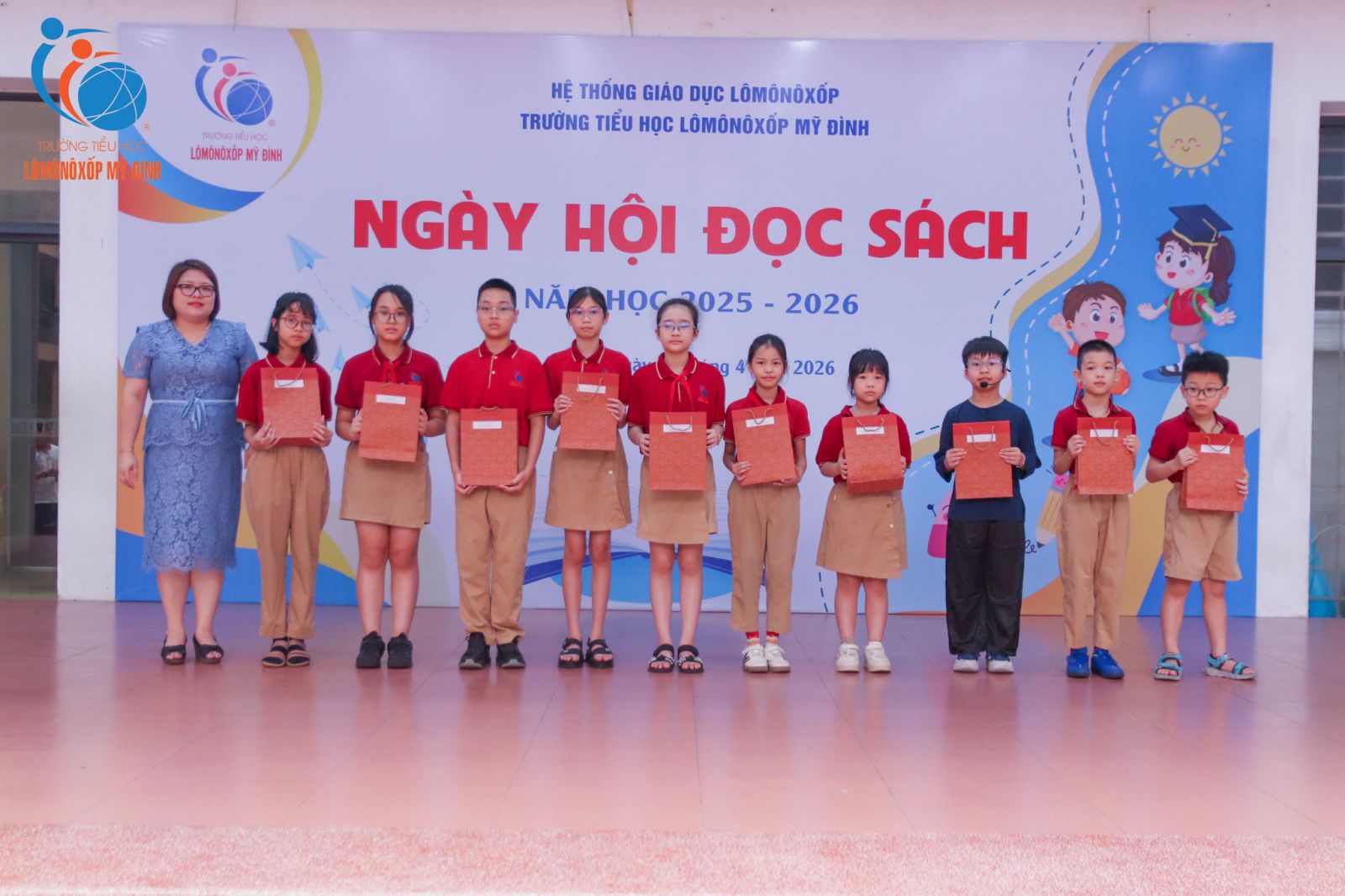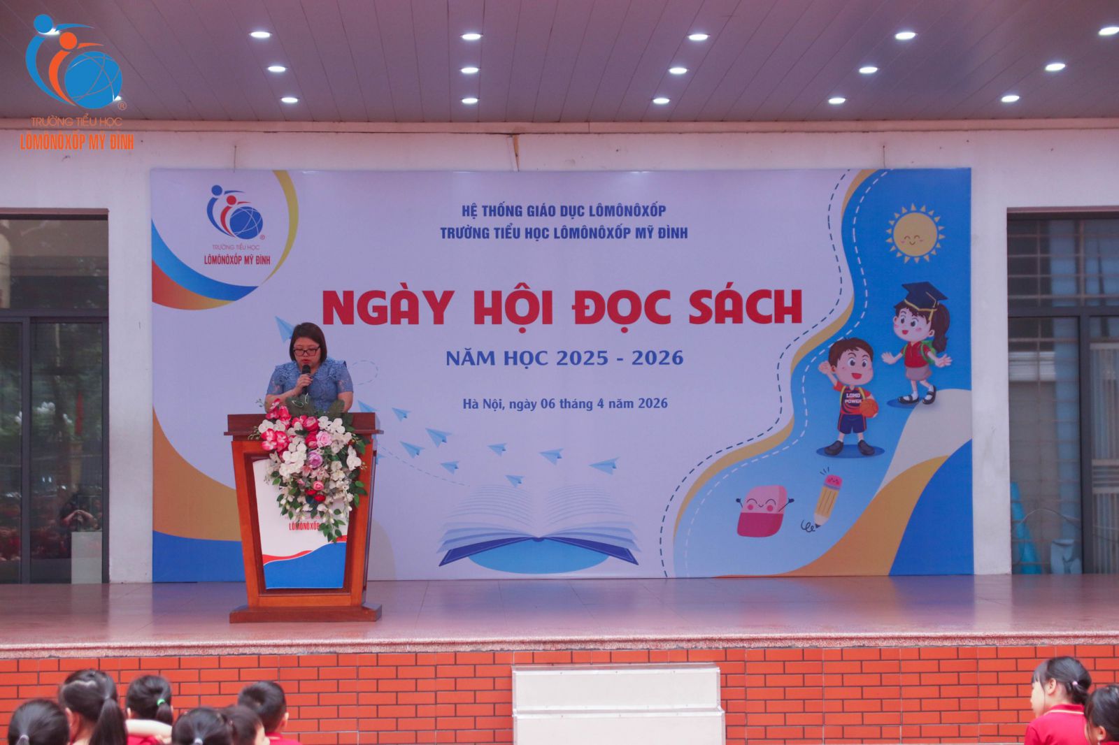 Mỗi cuốn sách giống như một người bạn kiên nhẫn, lặng lẽ đồng hành cùng người đọc theo thời gian để nuôi dưỡng tâm hồn và dẫn dắt mỗi người trưởng thành từ những điều giản dị nhất. Tại Trường Tiểu học Lômônôxốp Mỹ Đình, việc nuôi dưỡng thói quen đọc sách từ lâu đã trở thành một trong những nét văn hóa đẹp, một hành trình nhỏ góp phần giúp các em học sinh thêm cảm nhận và nuôi dưỡng tâm hồn giữa nhịp sống hiện đại. Với ý nghĩa đó, sáng ngày 06/04/2026, Ngày hội Đọc sách năm học 2025 – 2026 đã chính thức khai mạc, mở ra một không gian tri thức đầy cảm hứng, nơi mỗi câu chuyện đều mang theo ước mơ và sự tử tế.