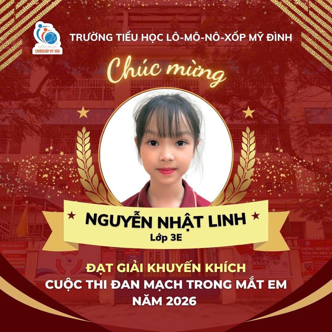 Nhà trường trân trọng tuyên dương và chúc mừng em Nhật Linh – học sinh lớp 3E, Trường Tiểu học Lômônôxốp Mỹ Đình, đã đạt giải trong cuộc thi vẽ tranh quốc tế: