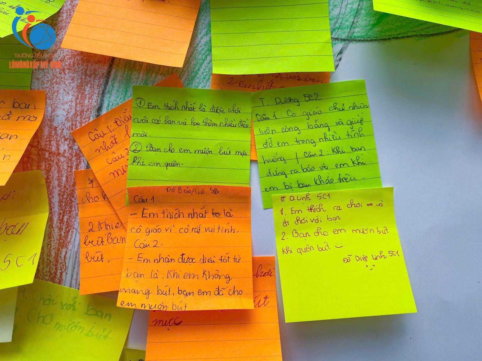 Điểm lắng sâu nhất của buổi sinh hoạt có lẽ đến từ hoạt động viết cảm xúc – nơi mỗi học sinh được tự do bày tỏ điều mình yêu thích ở lớp học và những hành động tử tế từng nhận được. Những tờ giấy nhỏ, những dòng chữ ngắn, giản dị mà chân thành đã tạo nên một “cây cảm xúc”, giúp các em nhận ra rằng lớp học không chỉ là nơi học tập mà còn là không gian của sự thấu hiểu và yêu thương.