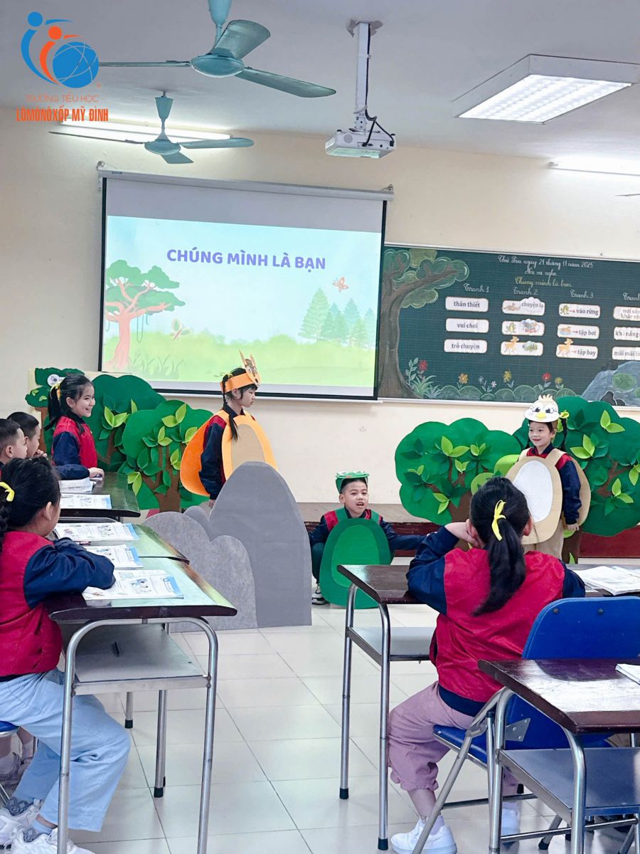 Trong tiết chuyên đề, các em học sinh được kể chuyện, sắm vai và hóa thân thành những nhân vật đáng yêu như nai vàng – ếch ộp – chim sơn ca. Những màn trình diễn đầy cảm xúc và tự nhiên của các con đã tạo nên một không khí học tập vui tươi, giàu trải nghiệm.