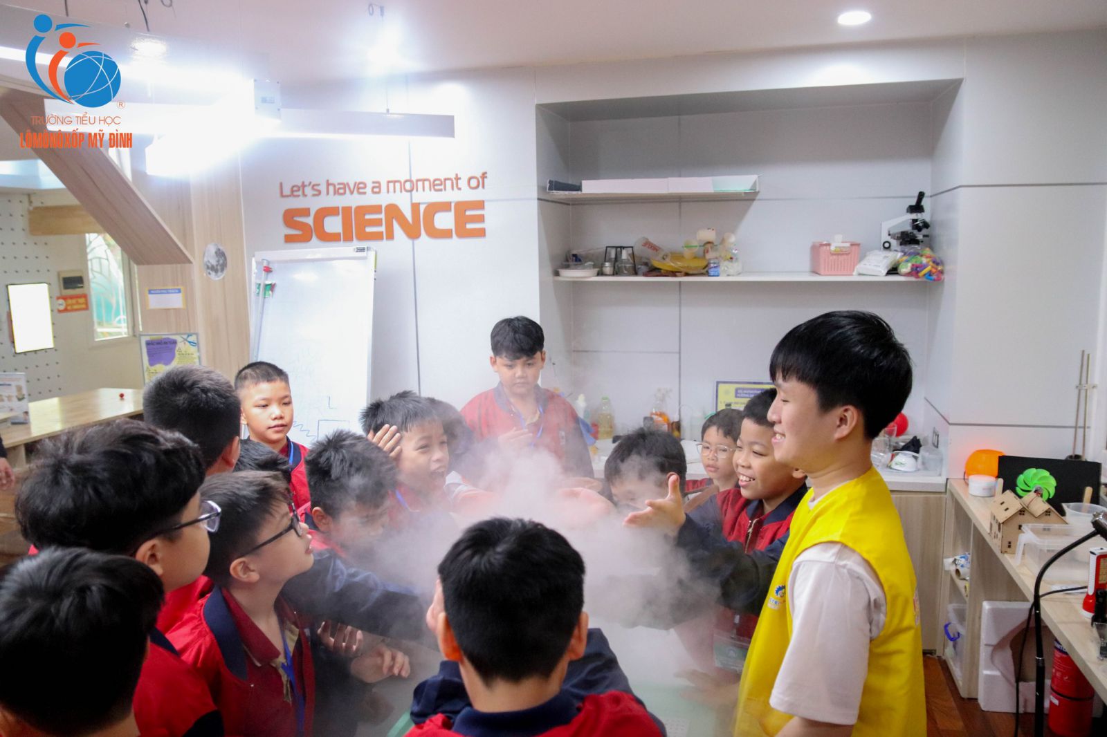 Không chỉ quan sát và khám phá khoa học, các con còn áp dụng Tiếng Anh liên tục thông qua trò chơi – nhiệm vụ theo nhóm – thử thách tại từng trạm: gọi tên đồ vật, mô tả hiện tượng, đoán – giải thích, đặt câu hỏi và thuyết trình ngắn với bạn bè. Vừa học vừa chơi, vừa vui vừa nhớ!